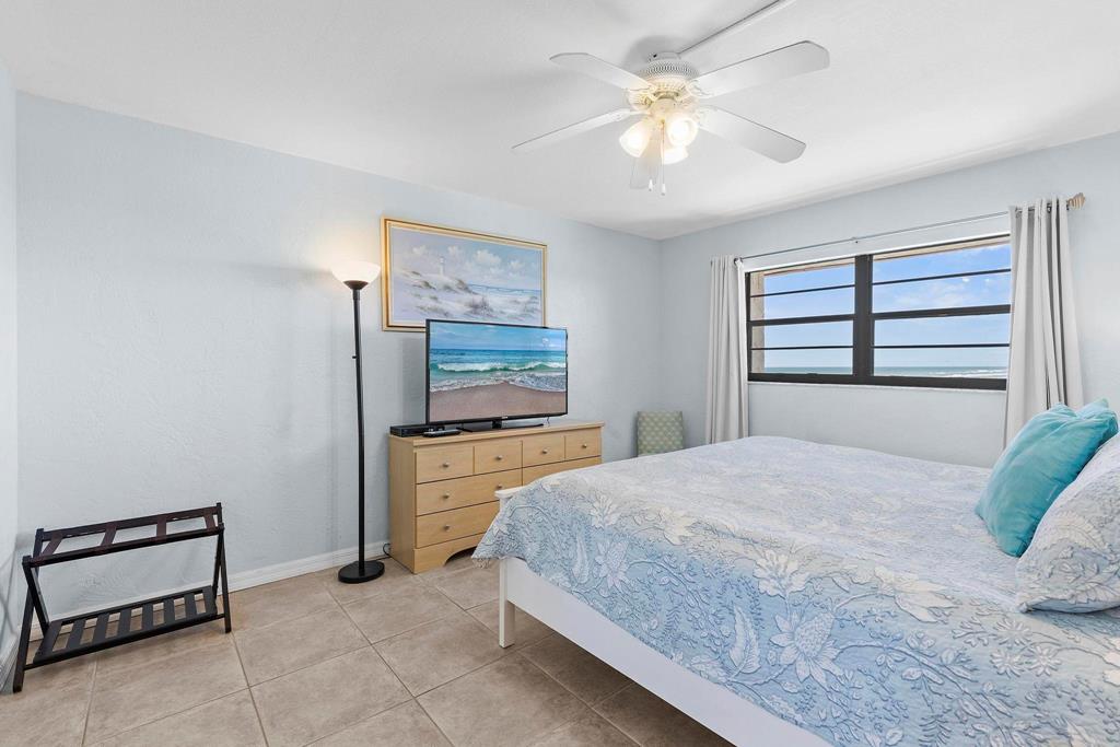 This Condo at Hacienda del Sol II is located on the non-driving section of New Smyrna Beach. Relax and rejuvenate with a lovely view of both the ocean and the pool. This renovated 2 bedroom 2 bathroom 5th floor condo has an amazing view, and ocean and pool views are ideal on the private balcony facing south. This unit sleeps 6 guests. A King bed in the master bedroom, and 1 Queen and 2 Twins in the guest bedroom. The unit also has its own secured WiFi along with Premier cable TV in the living room and master bedroom. For your convenience there is a full size washer and dryer set in the utility closet. Both the ocean and pool are the views from the private balcony facing south.