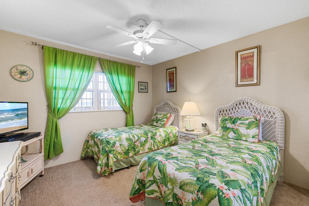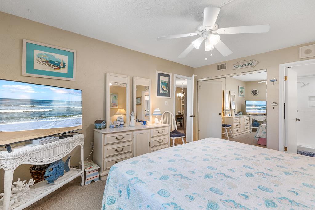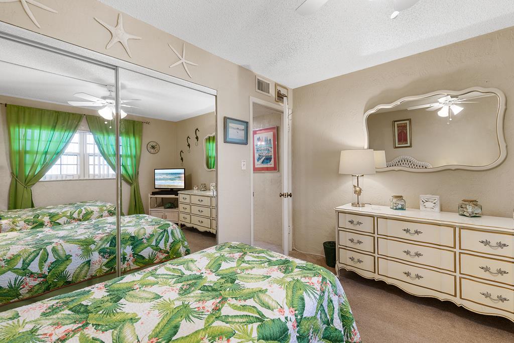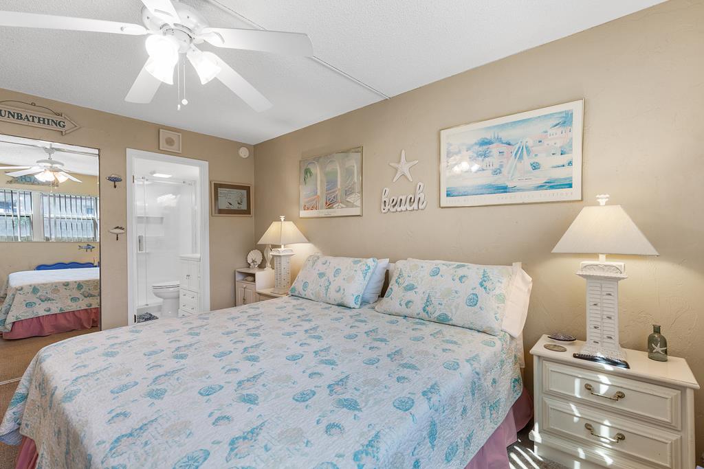 This 2 Bedroom 2 Bath poolside second floor condo has all of the comforts of home including a washer and dryer in the unit and a beautiful view of both the pool and the ocean! Sit out on the balcony with your cup of coffee and enjoy a lovely sunrise over the Atlantic Ocean or take a stroll along the beach. This unit offers a King Bed in the Master , 2 Twin Beds in the guest bedroom along with a Queen Sleeper Sofa with a brand new Memory Foam mattress in the living room. Fully Stocked Galley Kitchen with a brand new oversized sink with a convenient pull down sprayer for easy washing and a dining table that seats 6 people. This unit has 3 large TV’s with Xumo stream boxes for enhanced viewing experience and lots of living room seating for families along with an electric recliner for comfort. It has a beautiful updated master bathroom with a new soft close vanity with a quartz counter top and mirrored cabinet to store all your bathroom make up and treasures. Whether you are here to relax on the beach or catch the attractions surrounding the city, Hacienda Del Sol 2 has the best view on the island. Take care of yourself and take a vacation to create wonderful memories.